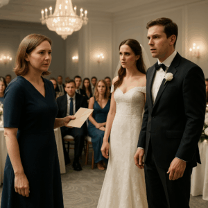 Whispers rippled across the crowd. Some guests clutched their pearls, others stared wide-eyed at Richard. The once-proud groom stood frozen, his jaw tight, eyes darting between Emily and the paper in her hands.