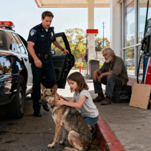 Officer Daniel Brooks was clocking off his night shift, driving his daughter, Lily, back to their house, when her small hand suddenly shot out, pointing. She was indicating a man settled on the curb near a gas station. The man appeared utterly spent. He was older, with a rough stubble on his face, and his clothes were tattered and coated in grime.