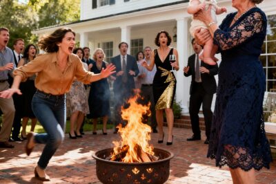 My family’s backyard baby shower turned into a nightmare when my mother picked up my baby and said, “You were born before your sister… you betrayed our family order.” Then she threw my daughter into the fire. My sister raised her glass and laughed, “You caused this.” I ran forward screaming, unprepared for the moment that would haunt me forever.