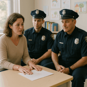 Within minutes, two police officers arrived at the elementary school. They gently took Lily aside to speak with her in a quiet room. Hannah watched through the window, her hands shaking, terrified of what they might discover.