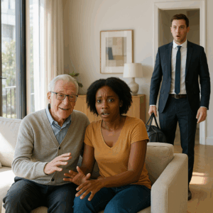 “Really?” Ethan’s jaw tightened. “Because it looks like my employee is sitting on my couch, holding my father’s hand.”