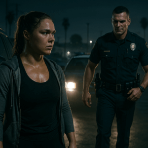 Bro, that’s Rhonda Rousey, and they’re arresting her. She was led to the back of a cruiser. Silent now, her jaw clenched.