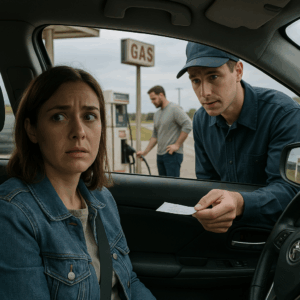 Behind me, the gas station shrank in my rearview mirror, that ordinary place where extraordinary things had happened. Where a stranger had looked at a situation and decided that silence wasn’t an option. Where a note scrawled hastily on the back of a receipt had been the difference between life and death.