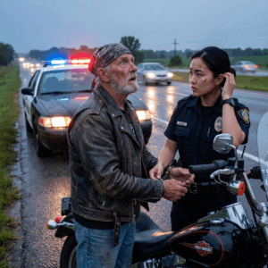 He handed me the documents, and that’s when I saw the name: Robert McAllister. But everyone apparently called him “Ghost,” according to the registration. As I walked back to my patrol car to run the plates, something nagged at me. There was something about this guy that didn’t fit the typical profile.