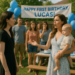 When I stepped inside, the air smelled of sugar and anxiety. Blue balloons bobbed against the ceiling. Paper banners spelled out “Happy First Birthday, Lucas!” with forced cheer. People I barely knew whispered in clusters, their eyes flicking toward me and then away — the widow, the tragedy, the uninvited reminder of mortality.