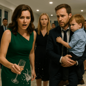 The champagne glass slipped from my fingers like my entire world was slipping away, crystal shards scattering across the marble floor of our anniversary party, each piece reflecting the lies I’d been living for three years. I stood frozen in the doorway of our dining room, watching my husband of seven years kneel down to comfort my best friend’s crying toddler. The child’s next words would shatter everything I thought I knew about my life, my marriage, and the people I trusted most.