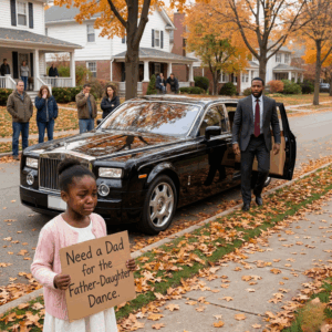 She nodded, hugging the sign to her chest. “My real dad died. Mommy tried… but the school says it has to be a dad. I just… I don’t wanna sit alone when everyone else is dancing.”