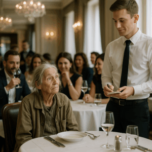 She was seventy-three years old, small and slight, with silver hair pulled back in a simple bun that had loosened during her walk from the bus stop. Her coat was clean but visibly worn, patched at the elbows with fabric that didn’t quite match. Her shoes were sensible orthopedic ones, scuffed and practical, bought from a discount store. She carried a worn vinyl purse, the kind that had been popular in the 1980s and was now decidedly unfashionable. Everything about her appearance announced to anyone who cared to look that she did not belong in a restaurant where dinner for one could easily cost two hundred dollars.