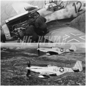 At 14:18, Galland saw them: a formation of 36 B-17s flying in tight defensive boxes, contrails streaming like chalk lines in the sky. Above them, weaving back and forth in loose pairs, were P-51s—silver Mustangs with checkered noses and invasion stripes. Even at a distance, they looked fast. Galland pushed his throttle forward, climbing toward the bombers. His Fw 190 A-8 was among Germany’s best fighters: 1,700 horsepower, four 20mm cannons, two 13mm machine guns. At low altitude, it could fight anything. But at 23,000 feet, the BMW 801 was gasping. Power had fallen to roughly 1,200 horsepower. His climb rate dropped from 2,800 feet per minute at sea level to about 800. He was fighting air as much as the enemy.
