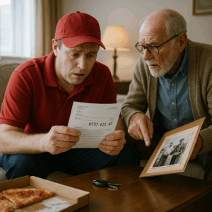 At fifty years old, I was delivering pizza in a beat-up Honda Civic when Walter Drummond opened his door and dropped to his knees. The December rain soaked through my Luigi’s Pizza jacket as I stood there confused, just wanting to collect my twelve dollars and move on to the next address. But this old man was staring at me like he’d seen a ghost.