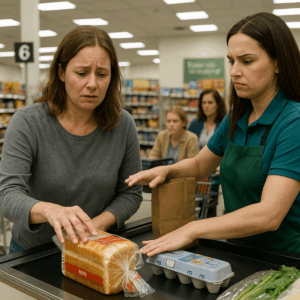 Jennifer sighed dramatically and tapped her fingers on the counter. “Ma’am, there are other customers waiting. If you can’t afford your groceries, maybe you should have checked prices before you got in line.”
