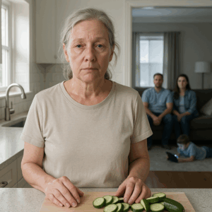 The raindrops tapped softly against the windowpane. I stood in the kitchen, the chef’s knife in my hand falling in a steady rhythm on the cutting board, slicing a bright green cucumber into perfectly even strips. The low hum of the range hood couldn’t quite drown out the laughter from the living room. I glanced up, and through the glass door I saw my son, Robert, with his arm around his wife, Nicole, lounging on the sofa watching television. My eight-year-old grandson, Leo, sprawled on the rug, wrapped in the blue glow of his tablet. The screenlight flickered across their faces—a little portrait of domestic bliss—while I felt like an invisible person on the other side of the glass.