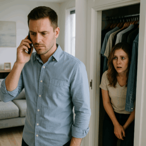 Emily, who had also happened to be home in the middle of the workday today, could hear perfectly what her spouse was saying. But he apparently didn’t suspect his wife was nearby. He couldn’t see her because she was in the walk-in closet.