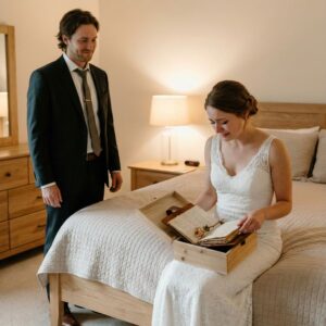 “I’ve got a wedding present for you,” Gabe said, his voice almost conspiratorial. He handed me a small box wrapped in shiny silver paper.