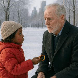 I think you need a hug, can I hug you? The words were soft but clear, piercing through the frosty hush of Central Park like a whisper from another life. James Holloway turned his head slowly, drawn out of the heavy fog of his thoughts. A little black girl stood before him, her cheeks pink with cold, one mitten missing.