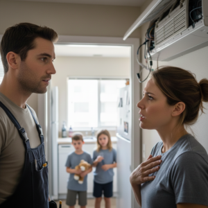 “Ma’am, has anyone worked on this air conditioner before?” he asked.