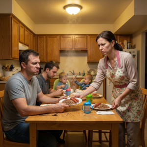 She went to the stove, pulled the pot closer, poured soup into a deep bowl, and set it before Oleg. He didn’t even thank her. Just started eating as if that was the natural order.
