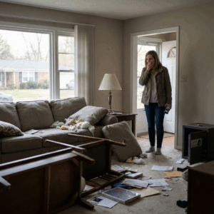 The first thing I noticed when I opened my front door wasn’t the overturned furniture or the scattered papers; it was the silence. That heavy, unnatural quiet that wraps around you like a burial shroud, whispering that something is terribly wrong.