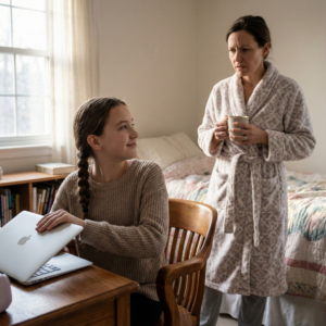 That evening, I decided to call my sister Janet for advice. As I dialed, I could hear Emma upstairs in her room. The sound drifted down through the floorboards, rapid clicking like she was typing frantically.