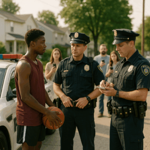 The late afternoon sun bathed the small suburban neighborhood in golden light. Sixteen-year-old Marcus Green was walking home from basketball practice, his gym bag slung over his shoulder, earbuds in his ears. He wasn’t bothering anyone—just a kid heading home. Suddenly, a police cruiser screeched to a halt beside him. Two white officers, Sergeant Daniel Harris and Officer Michael Blake, jumped out.