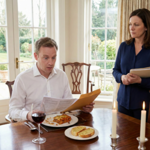 At dinner, my husband threw divorce papers at me. ‘Sign it — you’re beneath me now,’ he snapped. His mother smirked about his director title. I simply dialed one number