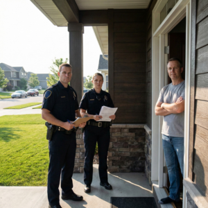 “Sir,” the older officer began, hitching his belt. “We received a call about a domestic disturbance. Specifically, an illegal eviction.”