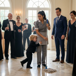 The boy—who hadn’t spoken a word in over a year since his mother died—had just broken his silence, calling “mom” a woman in a gray cleaning uniform, with a plain ponytail and a mop in her hand.