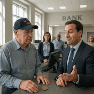 Walt paused at the bank’s entrance, adjusting the collar of his best shirt—a white oxford that showed its age despite careful pressing. Through the glass doors, he could see the typical Tuesday morning activity: young professionals conducting business on their phones, retirees handling their weekly banking with methodical precision, and the steady flow of transactions that kept the modern economy functioning.