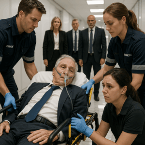 The sound shattered the polished calm of the boardroom. Seven executives in thousand-dollar suits froze in place, their faces draining of color as their boss, Daniel Mercer — billionaire founder of Mercer Technologies — slumped lifelessly onto the floor. His tablet clattered beside him, its screen still glowing with graphs and stock prices.