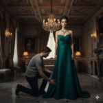 “Looks like we need a volunteer,” the DJ announced, as the young cousin who caught the bouquet had left early. William looked at me, and I nodded. The crowd cheered as I sat in the chair, and William knelt before me, sliding the garter onto my leg with a gentleness that felt surprisingly intimate for an act of pretense. The moment felt charged with possibility.