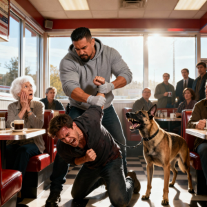 Word spread through town within hours: the “untouchable” Travis had been put on his knees in Marta’s Diner by her son — a Navy SEAL with a dog that looked like a living weapon.