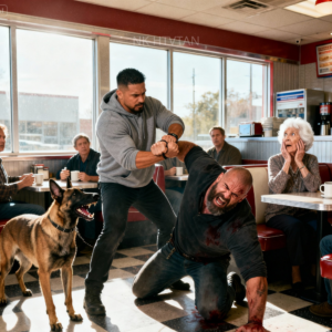 Word spread through town within hours: the “untouchable” Travis had been put on his knees in Marta’s Diner by her son — a Navy SEAL with a dog that looked like a living weapon.