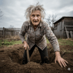 Semyon stood by the glass, motionless. The light was weak, but it was enough to see: in the old woman’s hands was the shovel again. She was digging slowly, carefully, as though she knew—each swing could reveal something more than just earth. Something she feared.