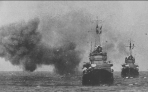 No enemy ships, no muzzle flashes, no torpedo wakes. 11:51 p.m. Arashi, 500 m ahead, took three torpedo hits in rapid succession. The destroyer rolled onto her side and sank in 4 minutes. Sujura ordered his crew to fire star shells. Illumination rounds raked into the sky and burst above the sea, casting harsh white light across the water. The ocean was empty.