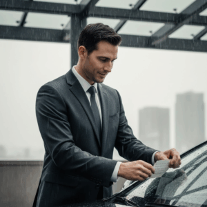 He stood under the building’s overhang phone pressed against his ear managing another corporate crisis when his eyes caught something fluttering against his windshield. His car. His windshield. He ended the call mid-sentence and walked into the rain. pulled the note free. Read it once. Read it again. Raindrops blurring the ink.