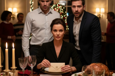 At Christmas dinner, my husband’s best friend smirked and said, “She’ll break down the moment you hand her the divorce papers. Women are predictable.” They pushed the papers toward me like it was some kind of joke. I picked up the pen and signed immediately. Their smiles grew—until I placed my own gift on the table: a small envelope with one thin document inside. When they opened it, every smile vanished.