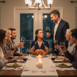 Their split-level house sat on a quiet cul-de-sac in New Jersey, the kind where every mailbox matched and kids’ bikes lay tipped over on perfect front lawns. Inside, the dining room was dressed for company: my mother’s “good” tablecloth, the fake crystal centerpiece she’d bought on sale at Macy’s, battery-operated candles flickering next to a bottle of red my dad called “fancy” because it didn’t have a twist-off cap.