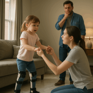 Alejandro looked at Lupita, who had looked down again. «Mateo, come here,» Alejandro said, kneeling down to his son’s level. The boy approached, leaning on his crutches.