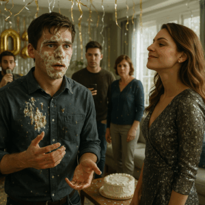The plate hit so hard it cut my lip. Carrot cake splattered everywhere—eyes, nose, shirt, floor.