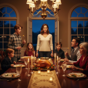 His mother chuckled like he’d just delivered the punchline of the year. Lauren glided behind him with a bowl of sweet potatoes crowned with toasted marshmallows. My kids sat across from me, backs straight, hands in their laps, trying hard to look like the kind of children that belonged at a table like this.