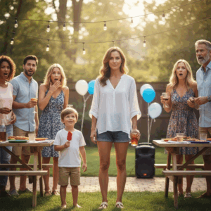 The sun had started to dip behind the fence, casting long amber lines across the patio. People had settled into the second round of drinks, the kind that made their laughter louder and their judgment looser. That was always Mallerie’s favorite time, when she could turn the spotlight into a weapon and call it “just teasing.” She sat on the wicker bench near the fire pit, glass of wine in hand, surrounded by an eager semicircle. I saw it coming the moment she leaned forward with that grin she always wore when she was about to offer a story everyone else was too polite to challenge.