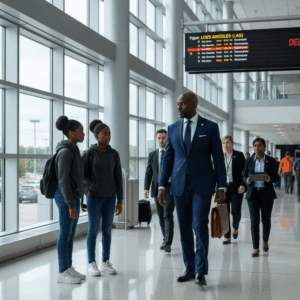 The girls stood near the terminal window, confused and embarrassed. Maya’s voice trembled. “Alana… do you think it’s because of us?”