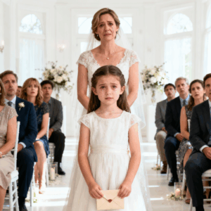 She slid off her chair, her tiny face red with determination and tears. She clutched something in her hand—a small cream-colored envelope that Andrew had given her earlier that morning. He had kneeled in front of her, whispered something to her, and tucked it into her little purse.