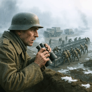 Germany’s railways are bombed daily. Trucks lack fuel. Supply lines are chaos. The gap isn’t technical. It’s industrial. Bergman thinks about his Vertsburg bridge. Three years of design, two years of construction, a unique work of engineering art calculated for that specific location, that specific river, those specific conditions.