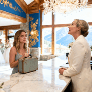 I stood there in the lobby of the mountain lodge with my small, scuffed suitcase beside me. The air smelled like pine, money, and overpriced scented candles. Outside the huge glass windows, the Colorado Rockies stretched out in endless layers of blue and gray, beautiful and indifferent. Inside, I could feel something in my chest slowly sinking, like a stone dropping into deep water.